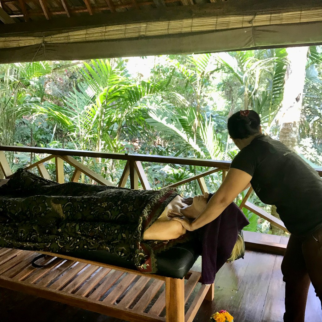 The magic of Bali and the kindness of the people worked their miracles again this year on retreat. With a small group due to some last-minute mishaps, (poor chookies, luckily we ask all participants to hold comprehensive travel insurance) we were able to spread out over the beautiful grounds of Bali Ecostay and enjoy the peace and privacy of our exclusive use of the unique open air bungalows, lulled by the ever-present music of the stream running through the property and powering our lights. With water drinkable straight from the taps, sourced from Bali Ecostay’s own spring, and all organic bath products as well as delicious food prepared with love and sourced from their own incredible permaculture gardens and food forest, we were able to totally relax into the Bali of days gone by.
